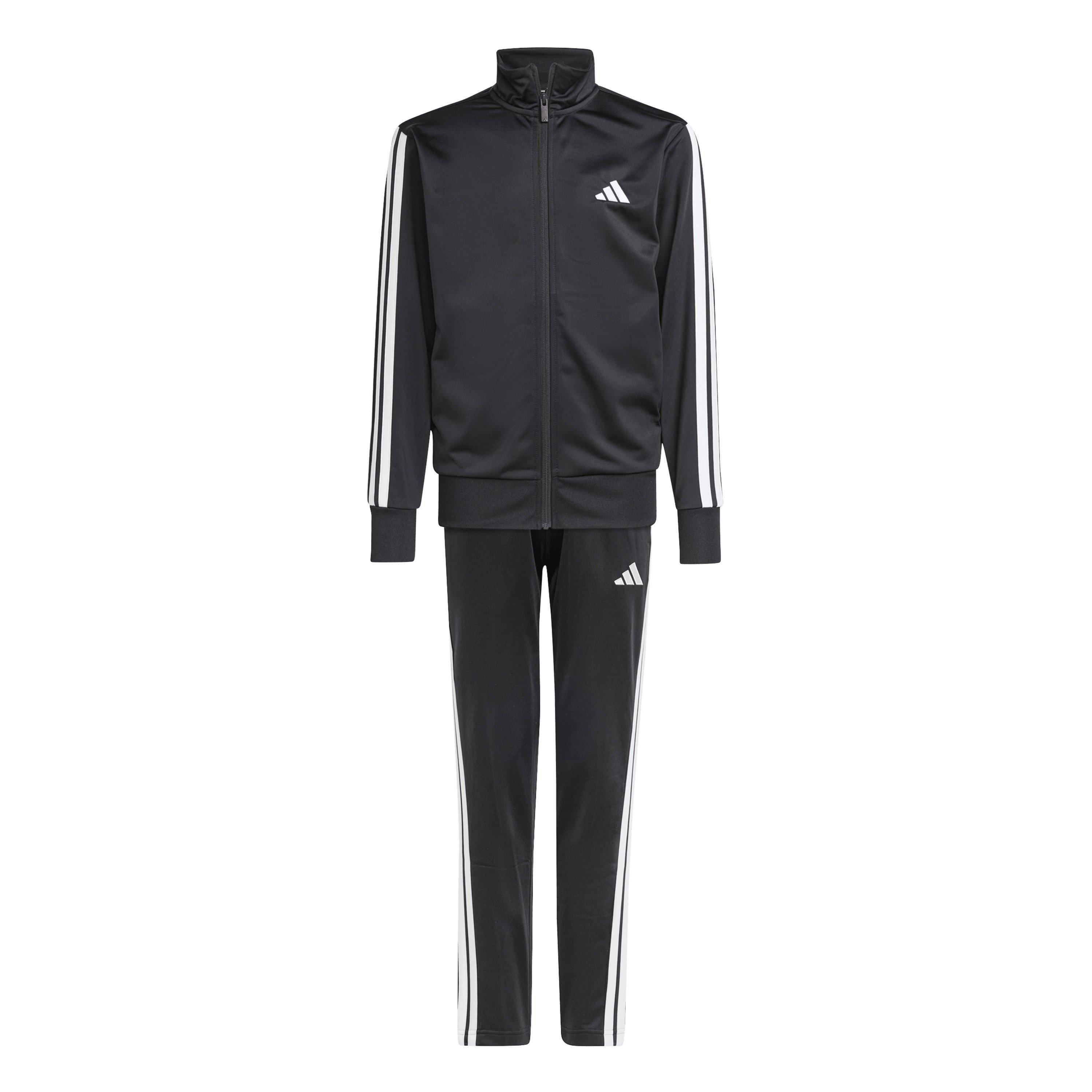 Het adidas 3 Stripe Jogger Suit is perfect voor dagelijks casual gebruik, met een eenvoudig maar stijlvol ontwerp met een kleurblok op de bovenste helft van de borst op het jack, samen met de iconische drie strepen op de mouwen en benen om de look compleet te maken. Dit adidas trainingspak biedt ook een super comfortabele pasvorm dankzij de zachte fleece voering aan beide zijden, samen met de ritssluiting en de elastische tailleband, allemaal afgewerkt met het adidas-logo.