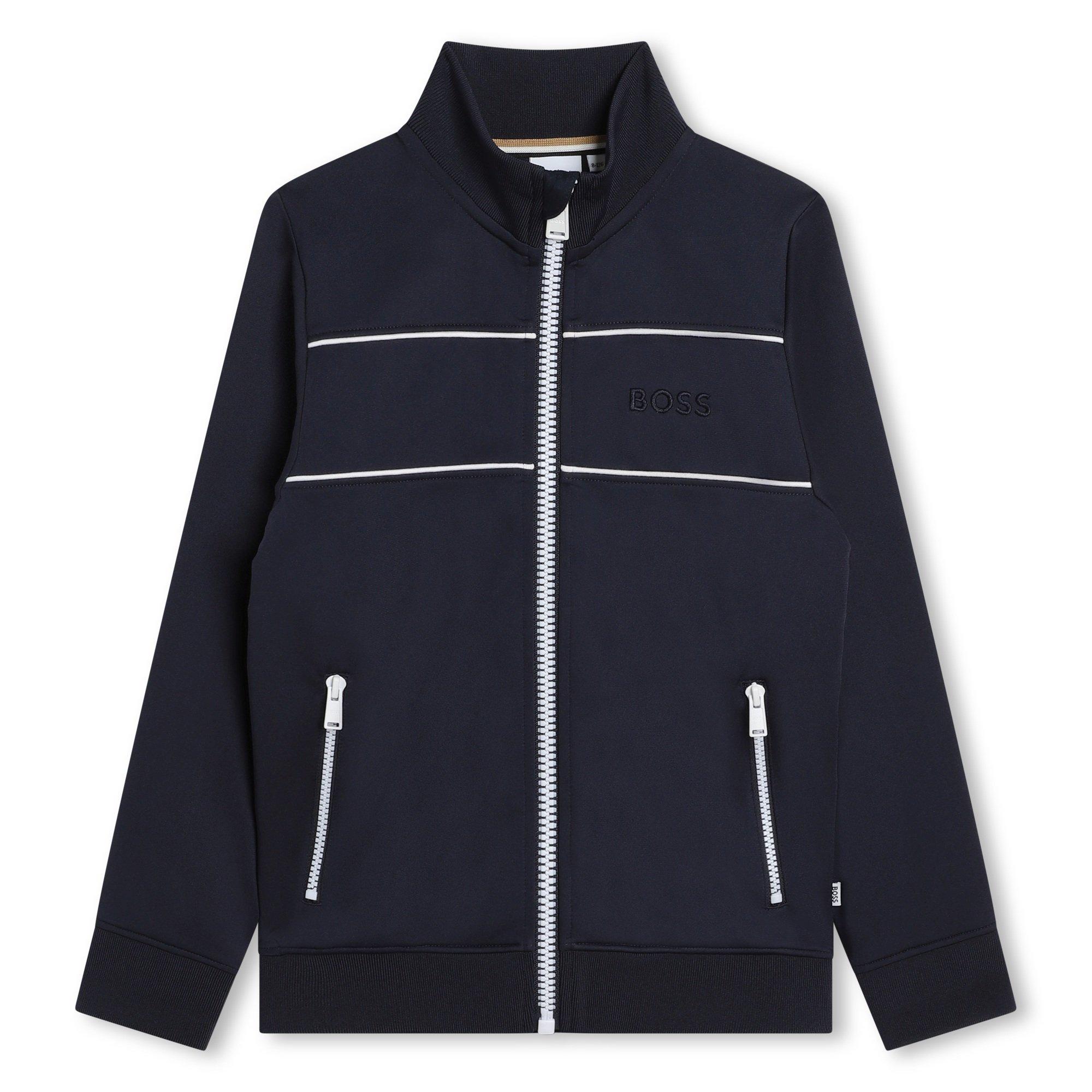 Een trainingsjack voor actieve dagen, dit BOSS Trainingsjack biedt praktische prestaties en is ontworpen om over andere items te dragen. Ontworpen voor junioren, combineert het de originele BOSS esthetiek met ademende mode-elementen en is het ideaal voor sportactiviteiten, of je nu rent of traint, of voor casual wear. De lichte constructie zorgt voor comfort tijdens beweging.