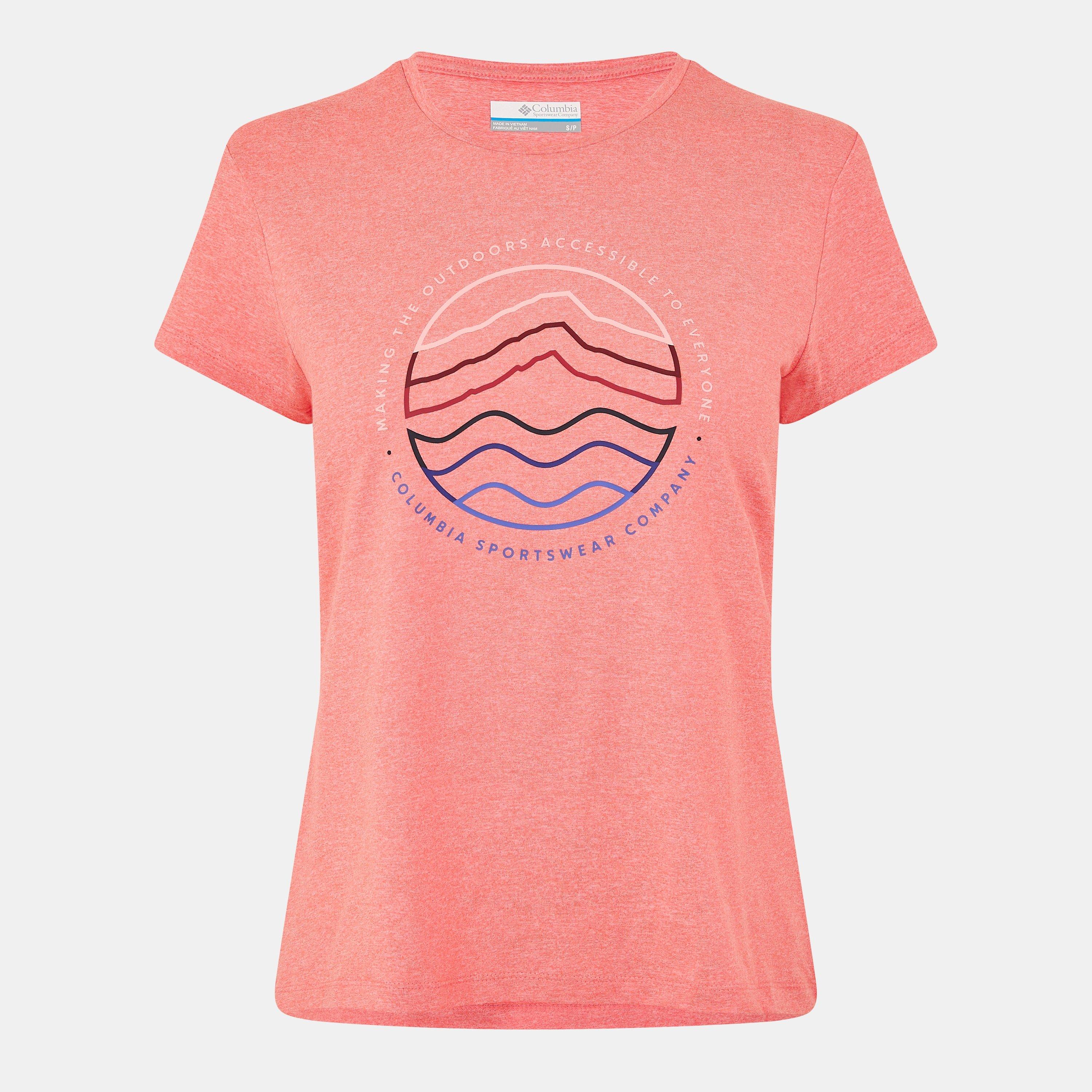 Elevate your everyday wardrobe with Columbia’s Sloan T-Shirt, designed for both comfort and style. Featuring a straight hem and short sleeves, this tee offers a modern and flattering fit. The bold graphic, branded print at the front adds a fresh, contemporary touch to your look. Perfect for casual outings, a day at the park, or a relaxed weekend brunch.
