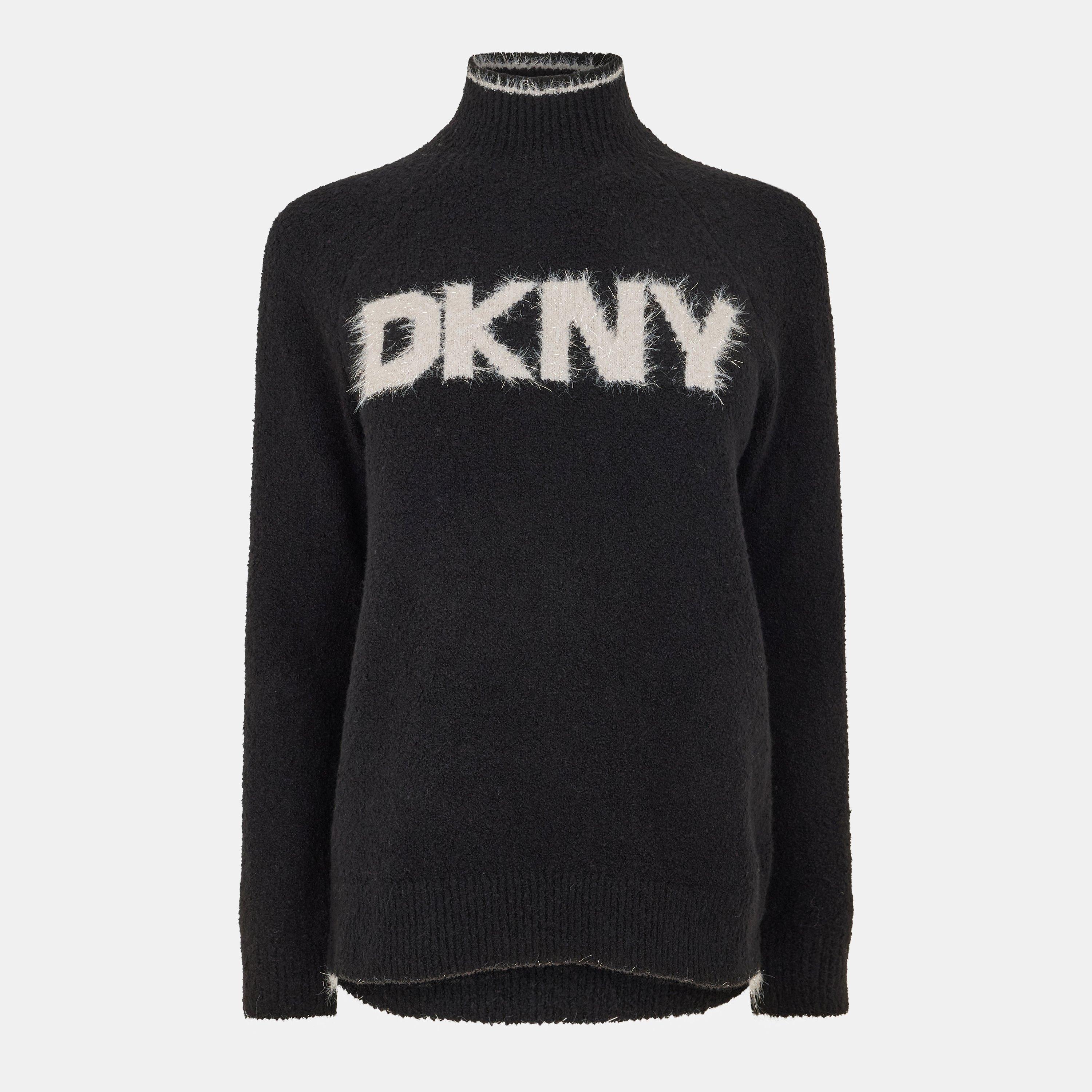 De DKNY Tinsel Logo Gebreide Crew-Neck Trui zit comfortabel als een strak gelaagd kledingstuk. Tinsel-effect logo details zorgen voor visuele interesse in de brei.