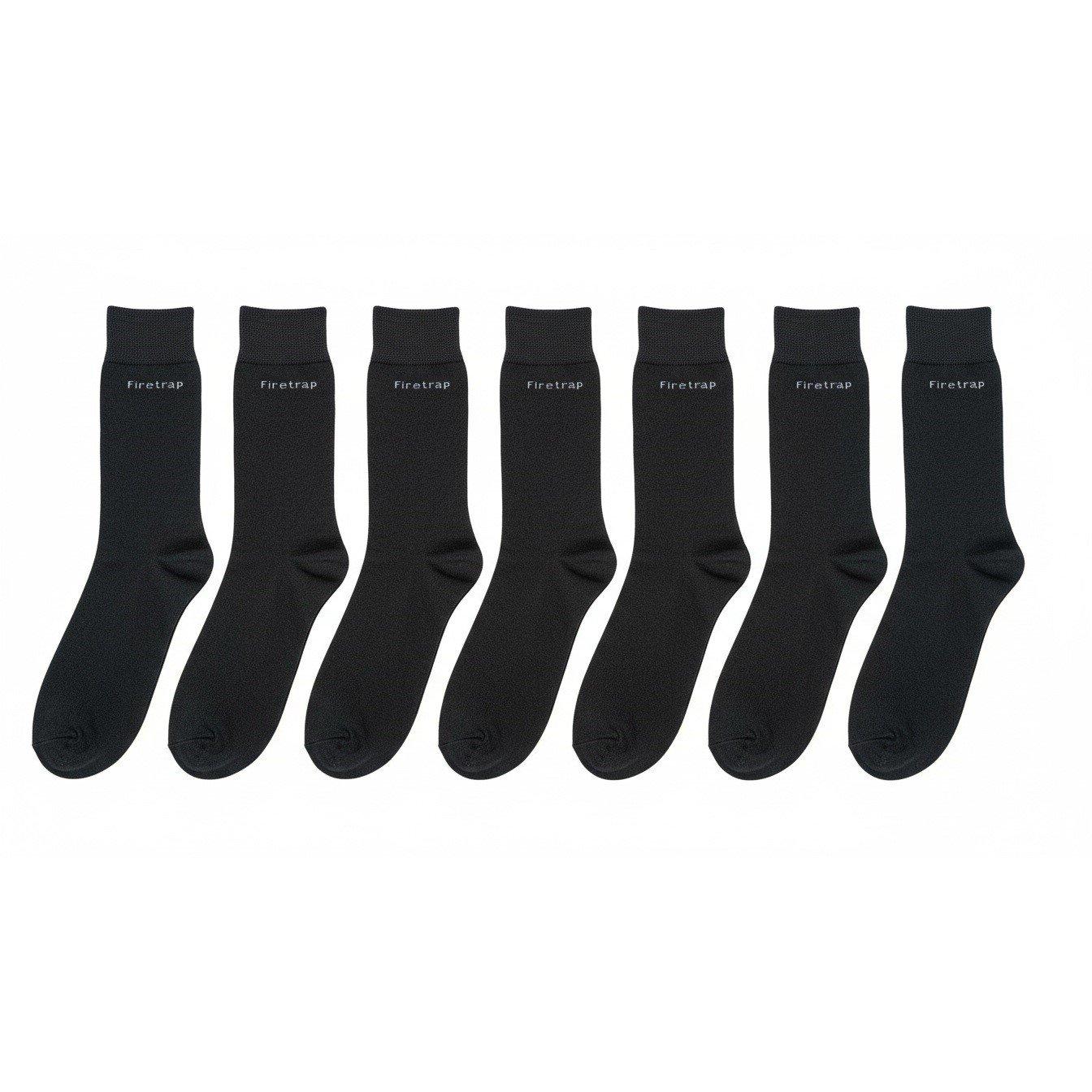 De Firetrap Formal 7 Pack Sokken met LYCRA® vezel zijn perfect voor dagelijks gebruik en bieden een comfortabele pasvorm met een elastische geribbelde opening, compleet met het Firetrap-logo voor een stijlvolle uitstraling. Ontworpen met LYCRA® SOFT COMFORT-technologie in de soktop, bieden ze een zachte en comfortabele stretch met een stevige en veilige pasvorm.
