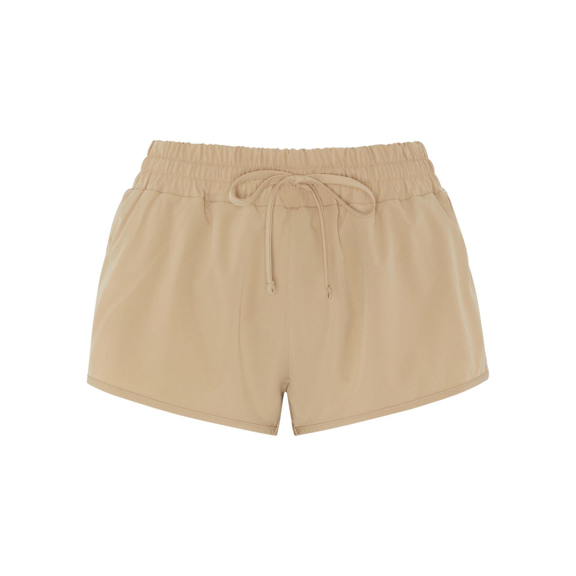 Glanzende geweven korte broek Elastische trekkoord taille HIIT branding Verkrijgbaar in 2 kleuren Lichaam: 93% polyester, 7% elastaan. Voering: 100% polyester