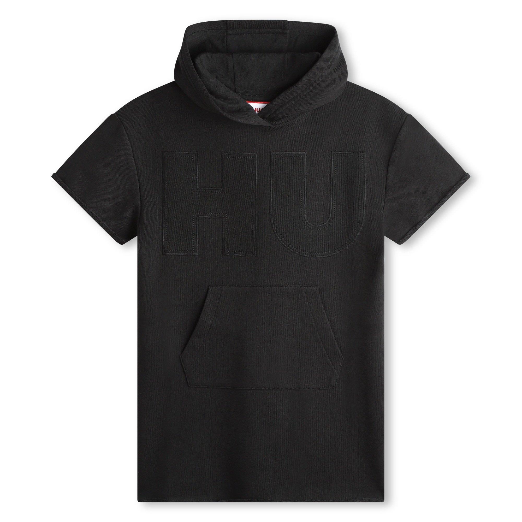 Een veelzijdig kledingstuk ontworpen om de garderobe van je kleintje te verheffen, de Hugo Hoodie Jurk is ideaal voor zowel casual uitjes als ontspannen sociale bijeenkomsten. Gemaakt van een katoenen jersey stof, heeft deze essentiële pull-over silhouet korte mouwen en een dij-lengte snit voor een ontspannen en comfortabele pasvorm.