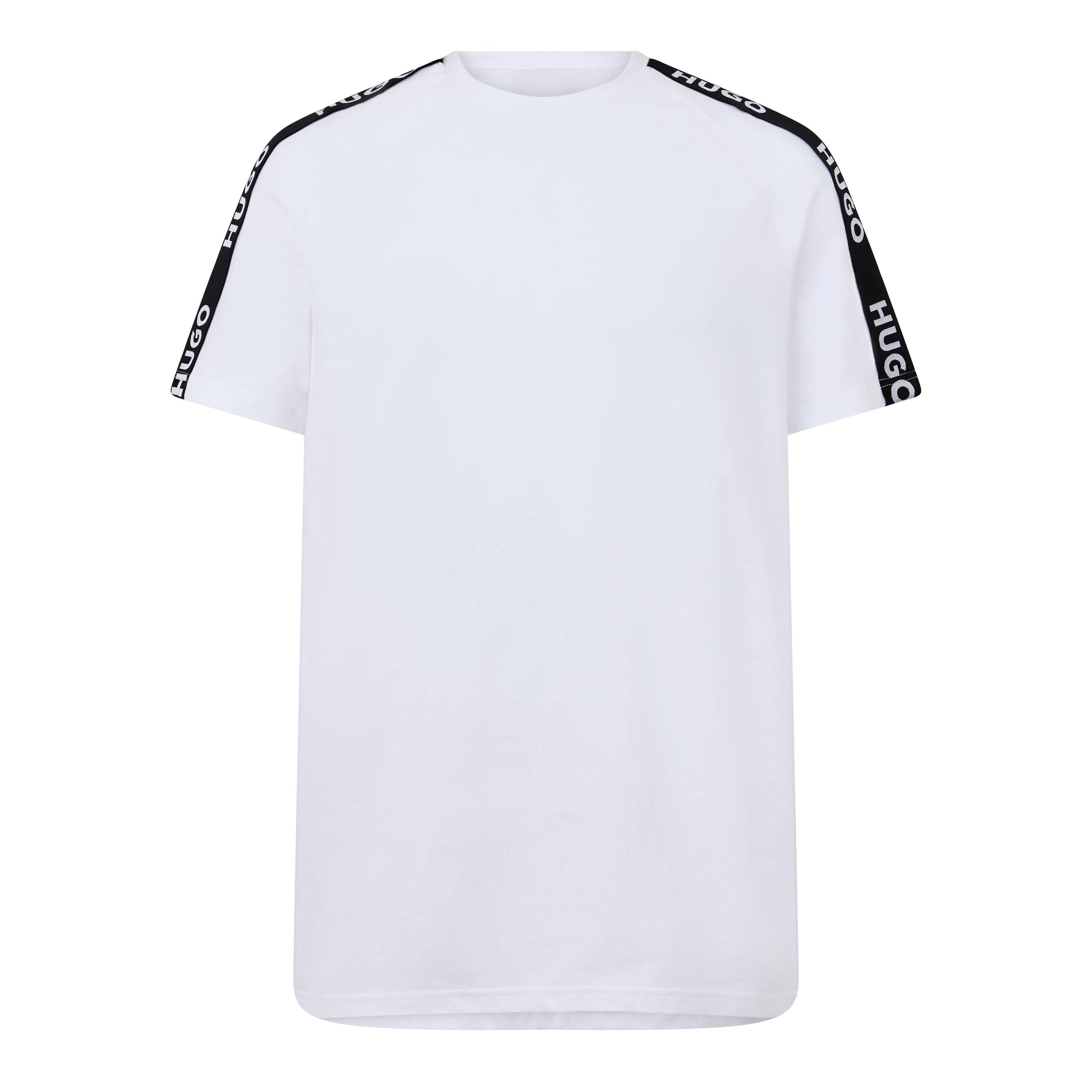 Verbeter je dagelijkse essentials met Hugo's Logo Tape T-Shirt. Met de iconische logo letters langs de schouders, voor een kenmerkende afwerking. Van casual dagen tot weekenduitstapjes, dit topje is een must-have in je garderobe.