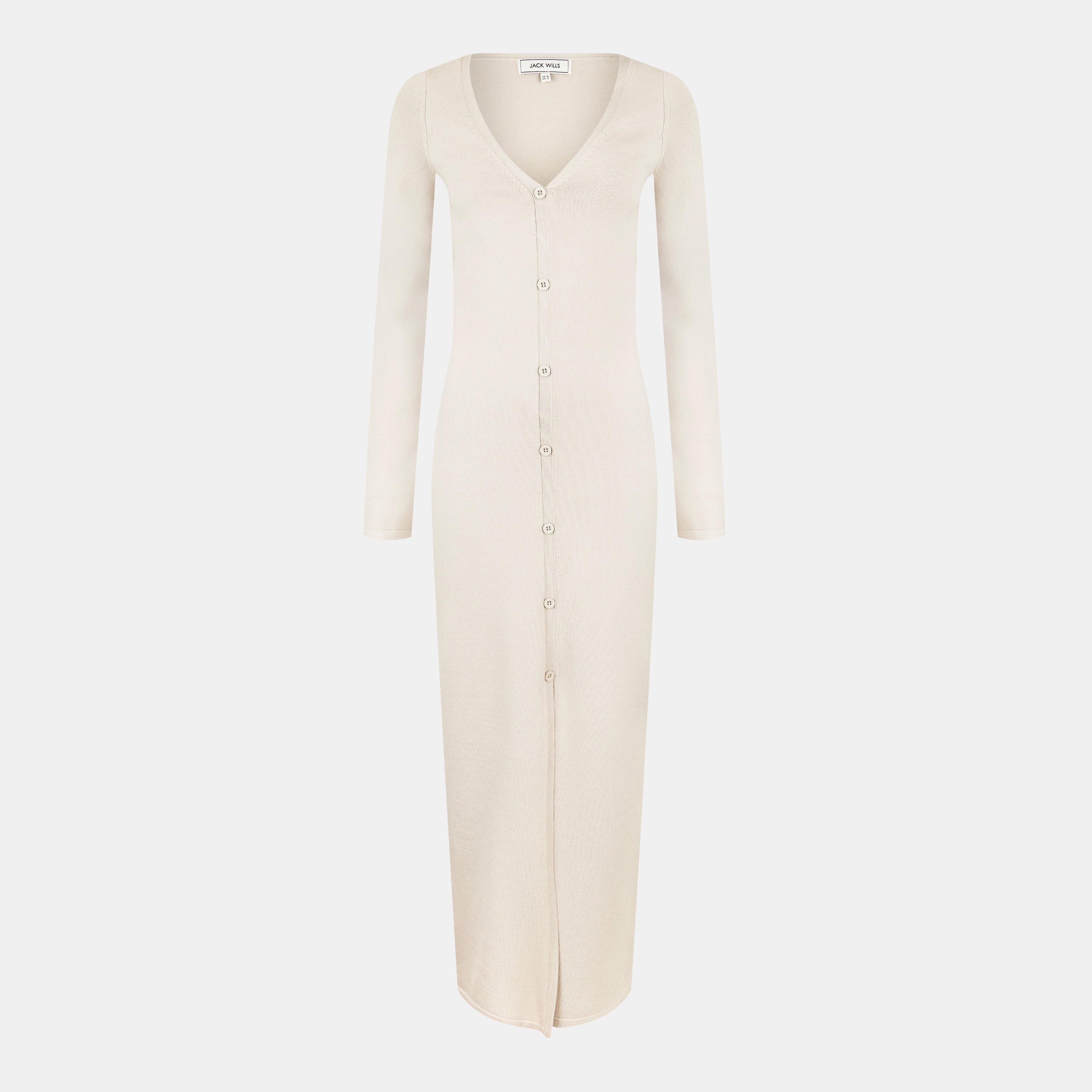 Jack Wills' Sparkle Button Maxi Jumper Dress offers comfort with its elongated shape that gracefully sweeps the floor. The knitted design is both practical and fashionable.