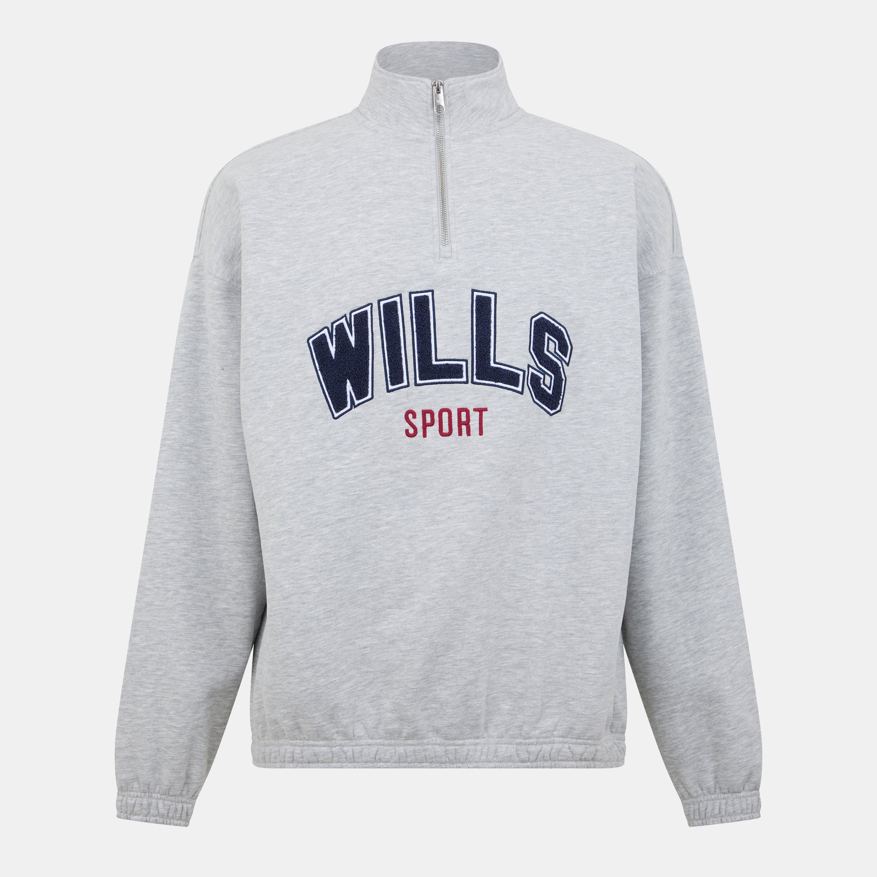 Jack Wills Men's Athletic Cotton Long Sleeve Funnel Neck Oversized Fit 1/4 Zip Fleece