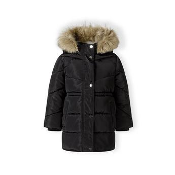Minoti Boys long padded coat with hood and snap details black