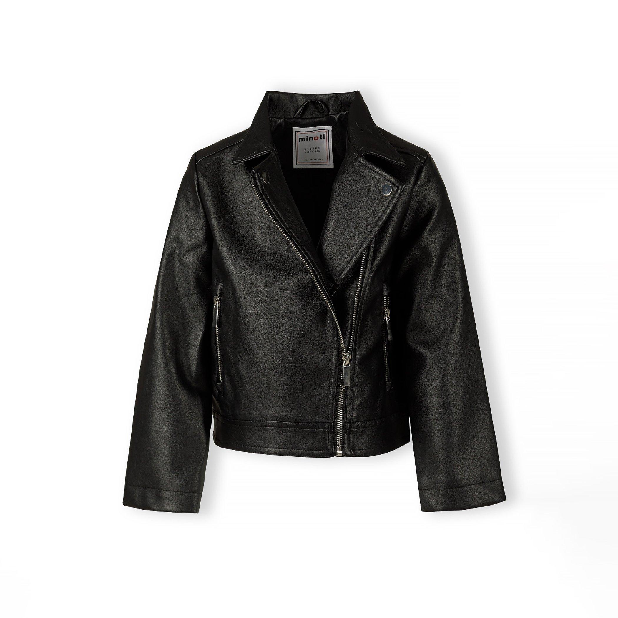 Minoti Girls biker jacket with silver zip black