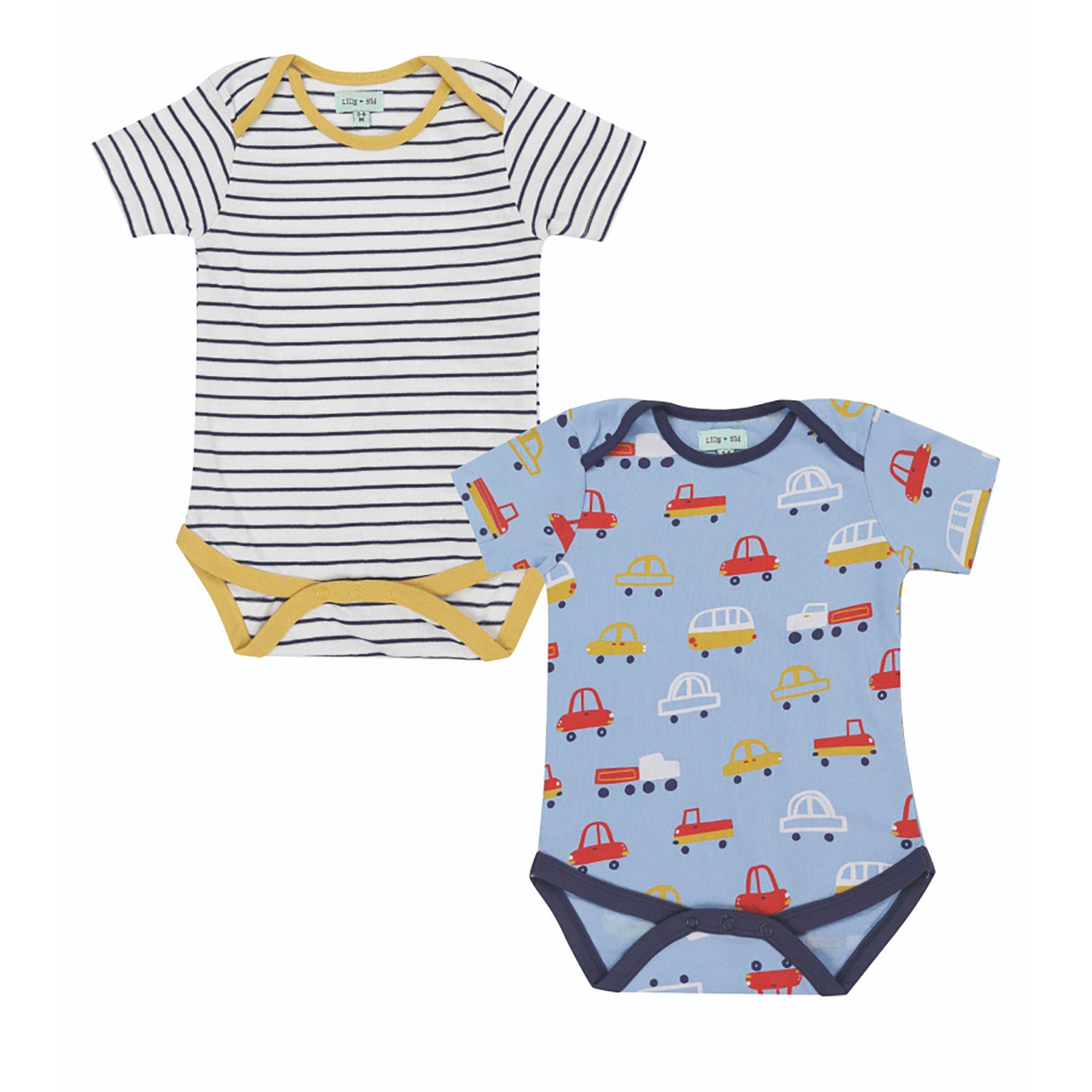 Lilly and Sid Lilly & Sid Multicoloured Car And Stripe Print Bodysuit - 2 Pack Giftset