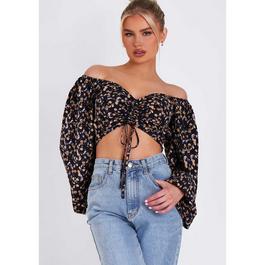 Missy Empire Woven Shirred Back Tie Front Crop Top