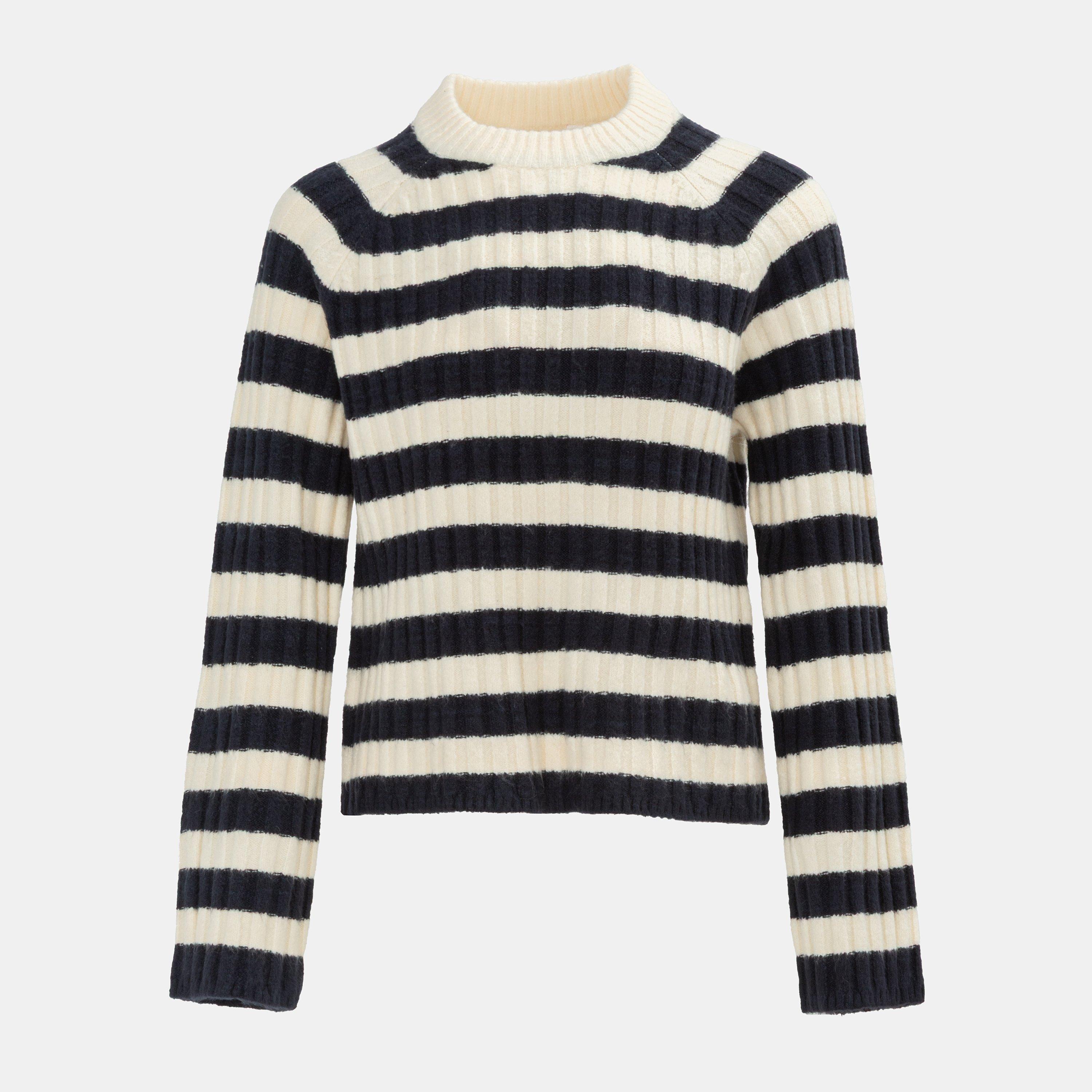 Ontwerp: Lange mouwen, ronde hals, gestreepte trui met open zoom, klassieke pasvorm met verschillende details, maakt je er casual en gekleed uitzien