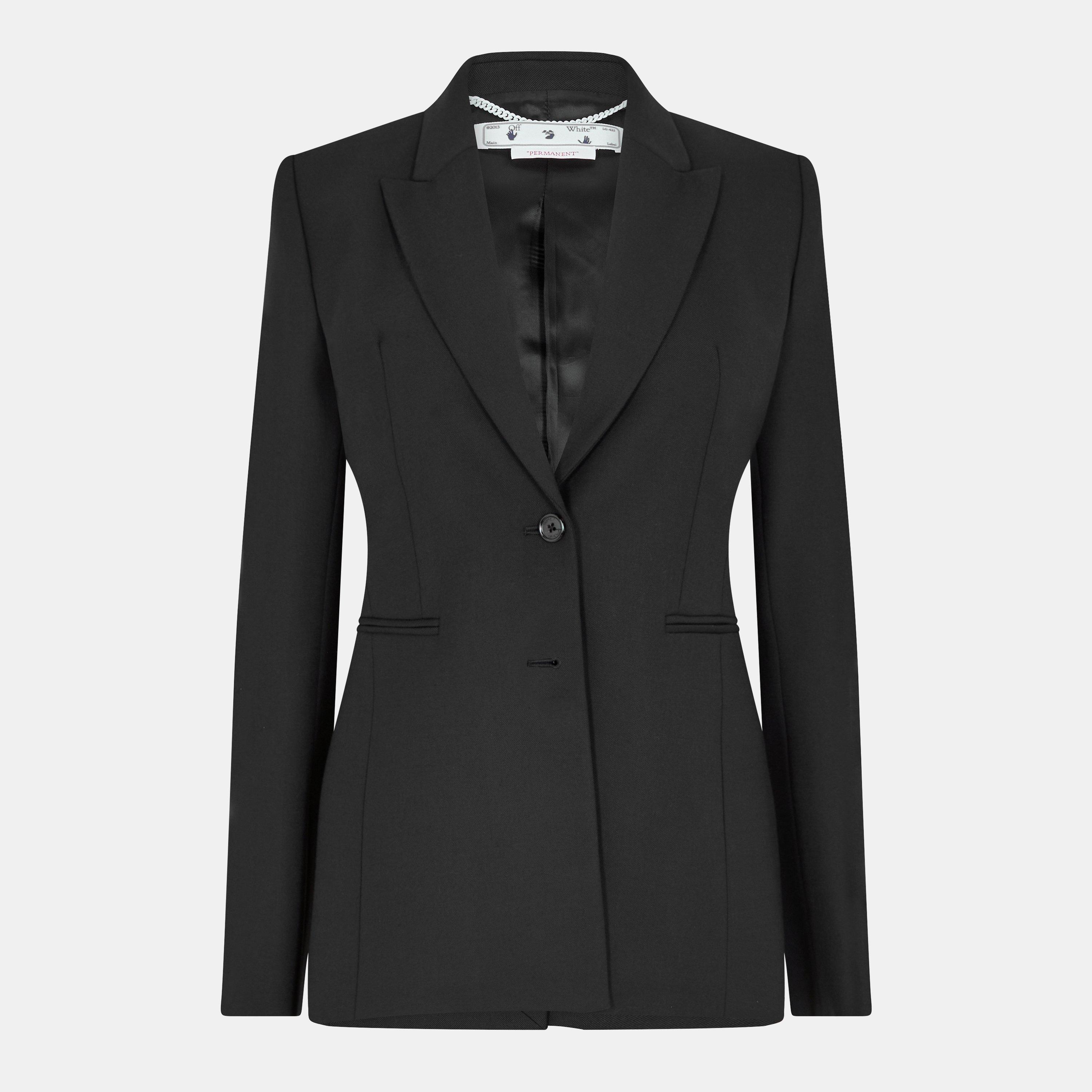 Off-White's Gestructureerde Colbert is gebaseerd op klassieke tailoring met gedefinieerde schouders die een scherpe, hedendaagse uitstraling creëren. Zorgvuldige precisie levert een gebalanceerde pasvorm die is ontworpen voor speciale gelegenheden.