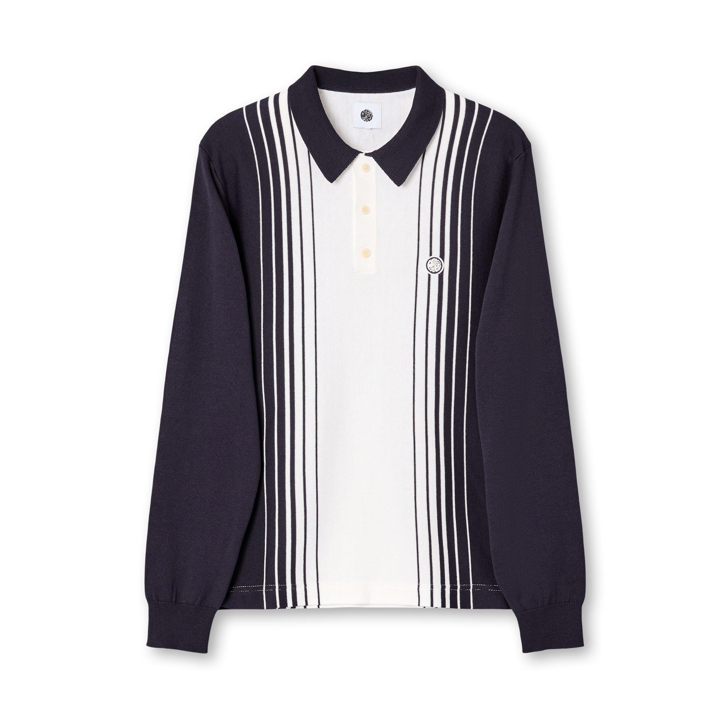Gradient breien creëert een patroon op het Pretty Long-Sleeve Polo Shirt, waarbij traditionele sportkleding wordt samengevoegd met hedendaagse mode-styling.