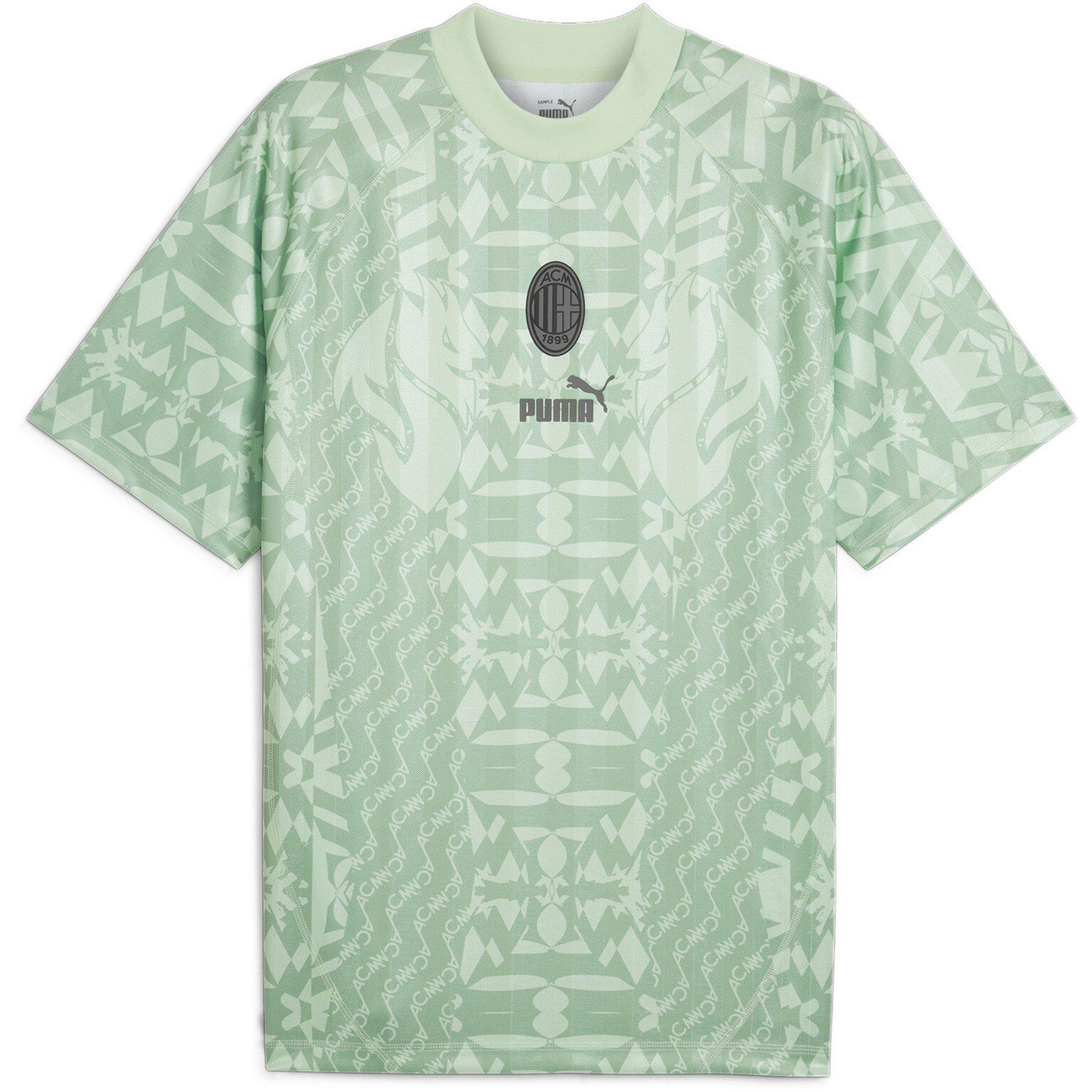 Team badge en Puma logo: Laat je loyaliteit zien met de garantie van kwaliteit en stijl, met de belangrijke symbolen van AC Milan en Puma.