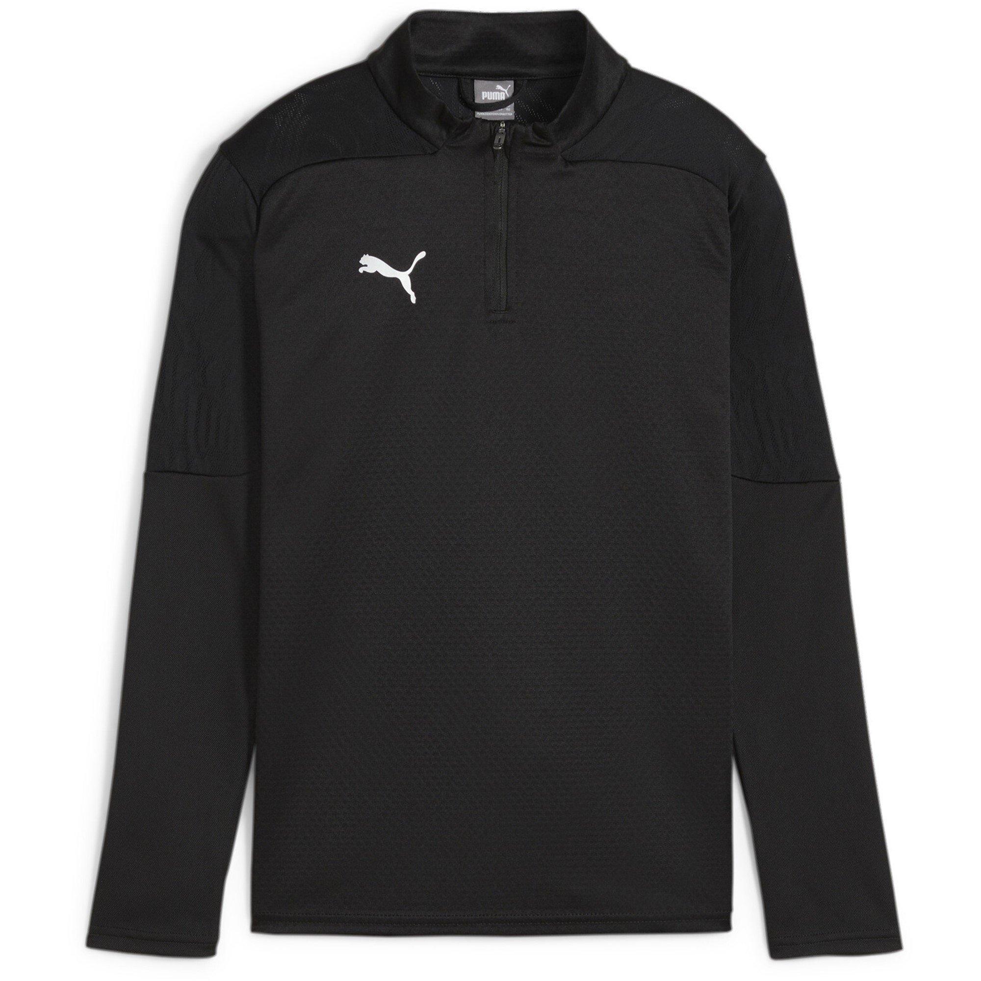 Puma's Kids' 1/4 Zip Training Fleece biedt warmte en prestaties in een kinderlijke sportstijl. Het ontwerp wordt gekenmerkt door de kwart-rits sluiting, die aanpasbare bedekking en temperatuurregulatie biedt voor actieve sporttraining.