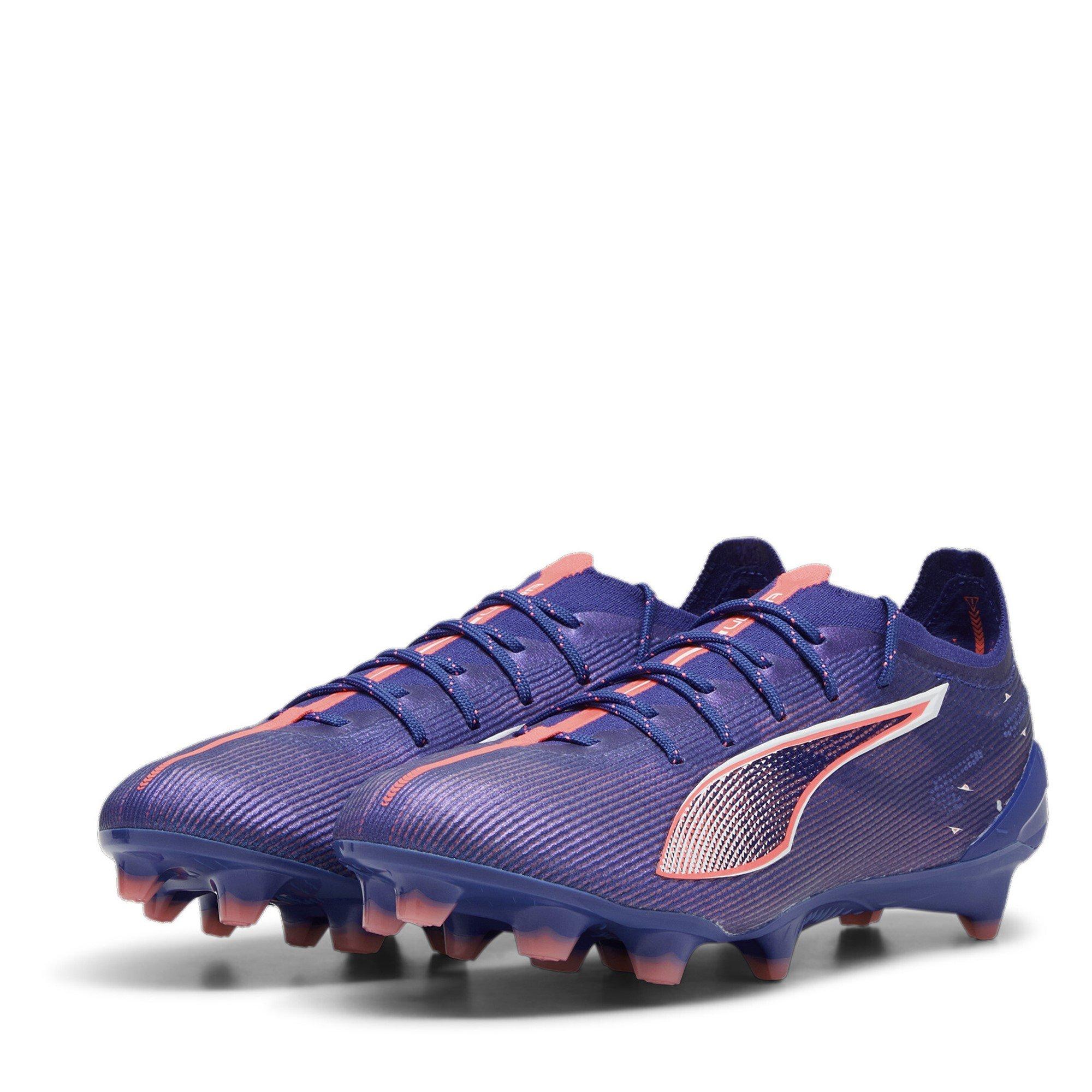 Ontworpen voor snelheid en precisie, de Puma Ultra 5 Ultimate Firm Ground Voetbalschoenen bieden een lichte, responsieve pasvorm voor explosieve prestaties op natuurlijke grasvelden. De MATRYXEVO™ bovenkant biedt optimale lockdown en verbeterde balcontrole. Perfect voor competitieve wedstrijddagen, trainingen met hoge intensiteit, of elk spel waar snelheid en responsiviteit belangrijk zijn.
