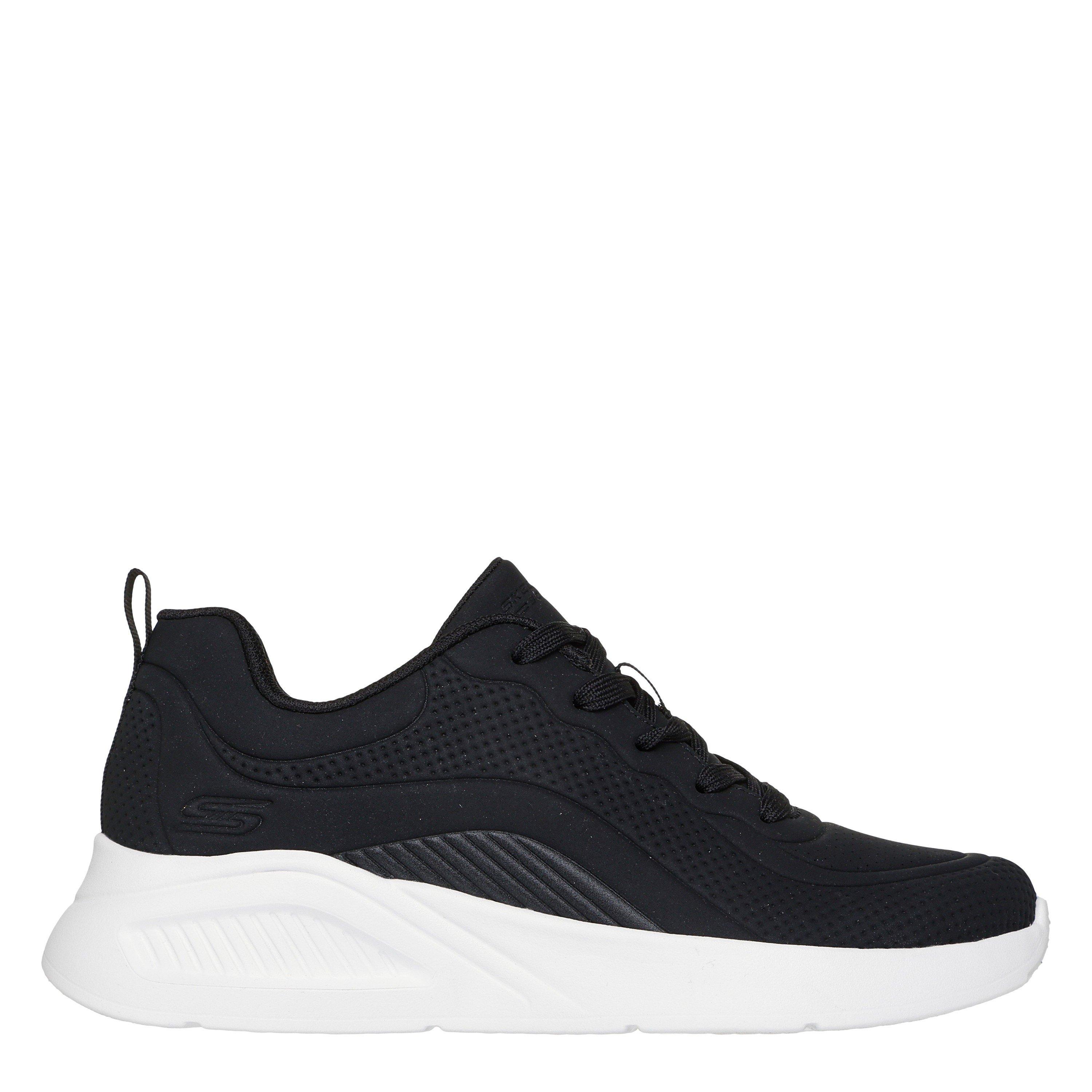 Ontwerpdetails Duraleather bovenwerk met rekbare veters Schokabsorberende wiggedempte tussenzool Flexibele grip buitenzool 1 1/2-inch hakhoogte Skechers® logo detail