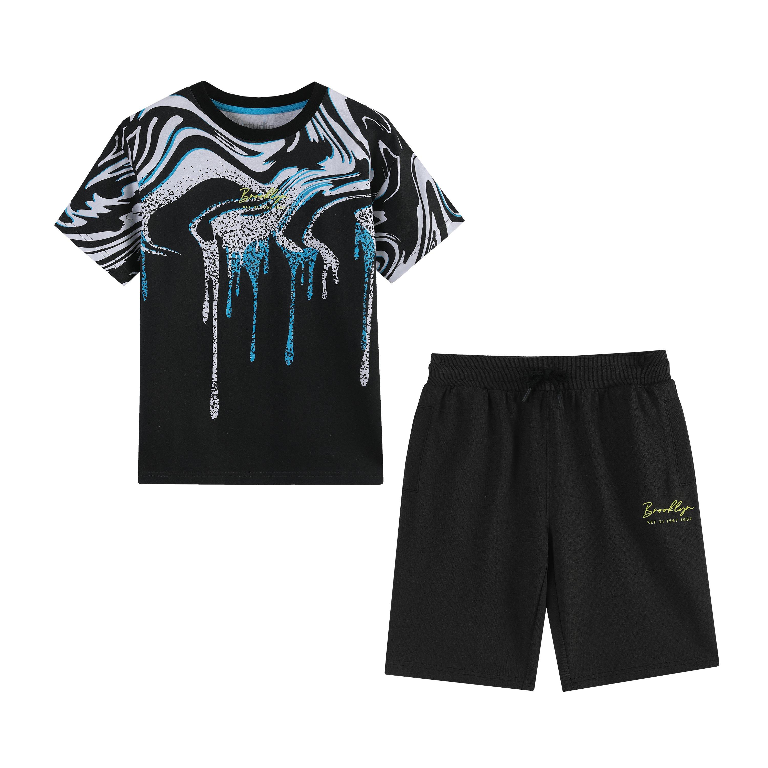 Studio's Kids' Swirl T-Shirt en Shorts Set heeft speelse spiraalpatronen op een gecoördineerde outfit die perfect bij elkaar passen, en biedt comfort met stijl voor actieve dagen. Deze kinderkledingset is ideaal voor spel en dagelijks gebruik.