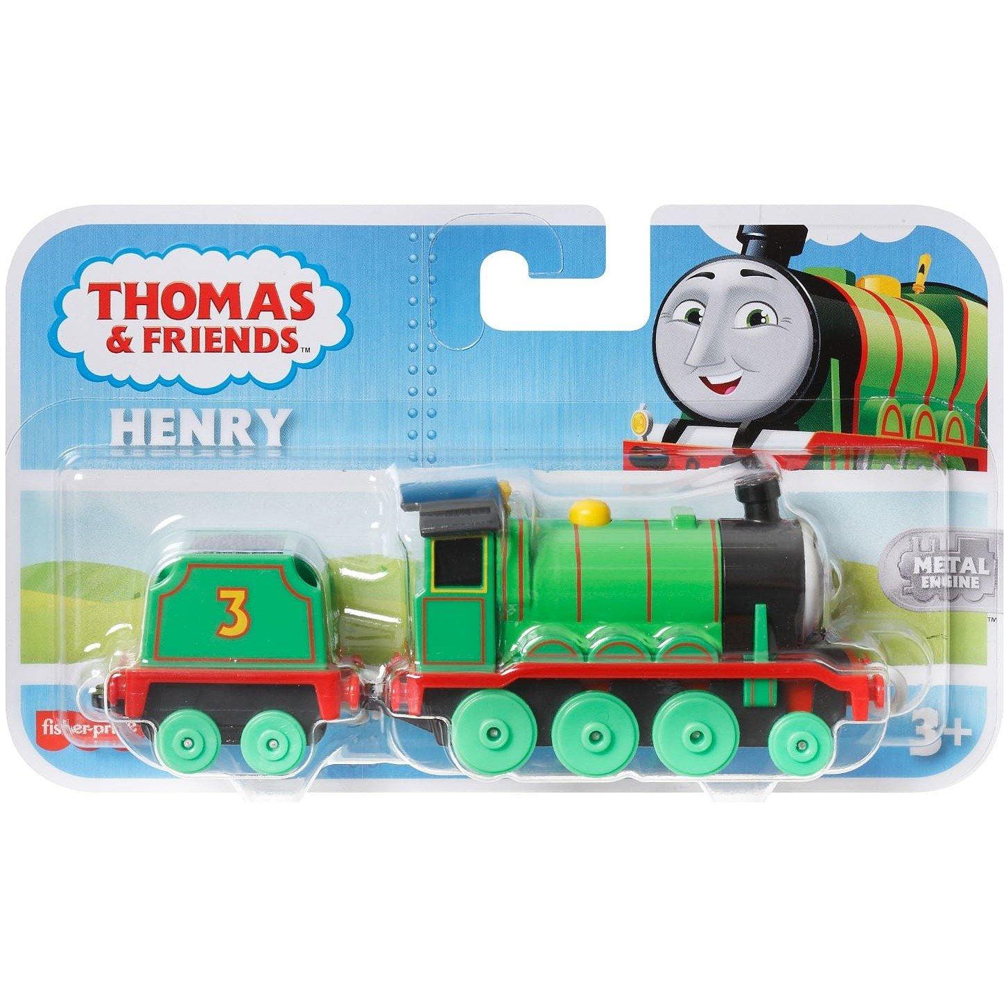 Collectie van gegoten metalen treinen met personages en thema's uit de serie Thomas & Friends: All Engines Go! Bevat 1 duwlocomotief, gestileerd als Henry uit de Thomas & Friends-show, plus bevestigbare vrachtwagen of tender (Elk apart verkocht en afhankelijk van beschikbaarheid). Deze gegoten metalen voertuigen zijn compatibel met alle Thomas & Friends-tracks (Tracksets apart verkocht en afhankelijk van beschikbaarheid.). Elke speelgoedtrein wordt geleverd met plastic connectoren om aan andere Thomas & Friends-treinen, voertuigen, vrachtwagens of tenders te bevestigen (Extra voertuigen en speelstukken apart verkocht en afhankelijk van beschikbaarheid.). Helpt fijne motoriek te versterken en stimuleert fantasierijk rollenspel voor peuters vanaf 3 jaar en ouder.