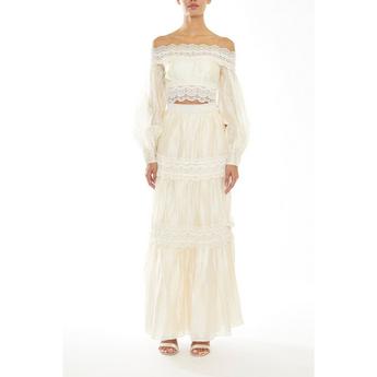 Lily and Lionel Elenor Lace Insert Midi Skirt In Burgundy