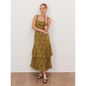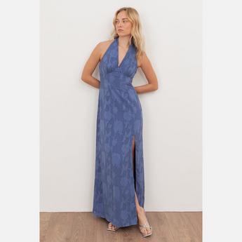 Lovedrobe Teal Floral Burnout Tie-Back Maxi Dress with Asymmetric Split Hem