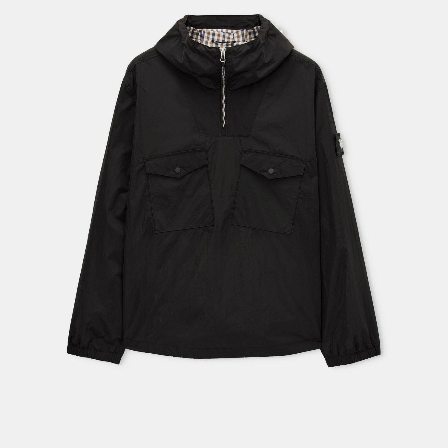Available in two fabrications: Our 100% Polyester iconic signature 3 colour fine weave mid house check and our WO staple lightweight high density woven 100% Nylon parachute style fabric with misted lightly reflective surface. All treated with an additional DWR (Durable Water Repellent) coating. Three piece hood with internal drawcord Centre front metal 1-4 zip with WO branded zip puller Fine piping to sides of zip Hidden check details on black colourway Subtle diagonal check details on mid house check colourway Angled chest pockets with small press stud fastening Side entry pockets with concealed press stud fastening Elasticated cuffs with adjustable press stud function Internal adjusters to hem Detachable WO badge to sleeve
